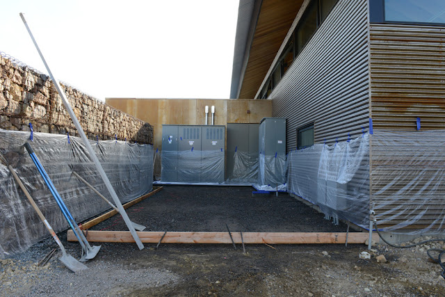 The concrete has a color that is meant to be close to some of the rock in the gabion walls, which all came from the site. I was not able to photograph all the grading work.